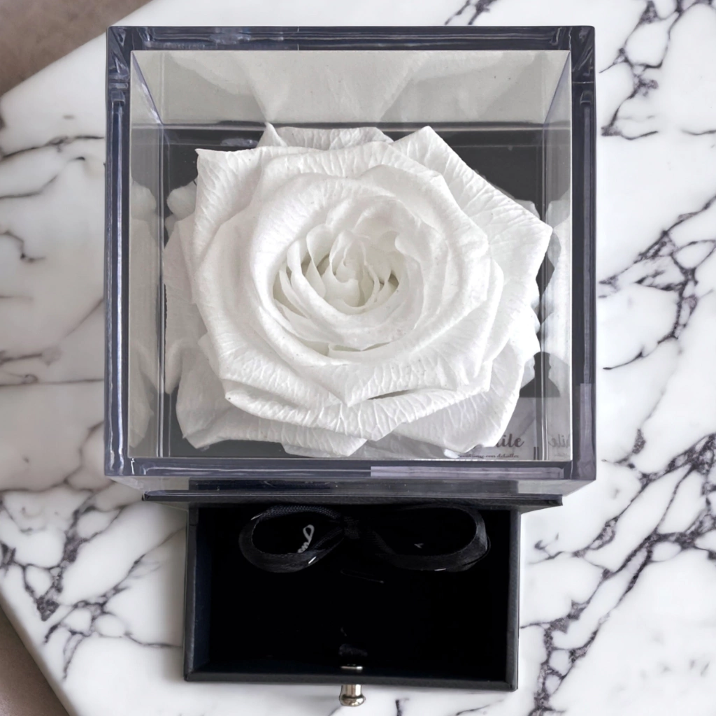 Incluye una rosa natural preservada (duración de 4 a 5 años gracias a su tratamiento de conservación) dentro de un joyero con compartimiento especial.