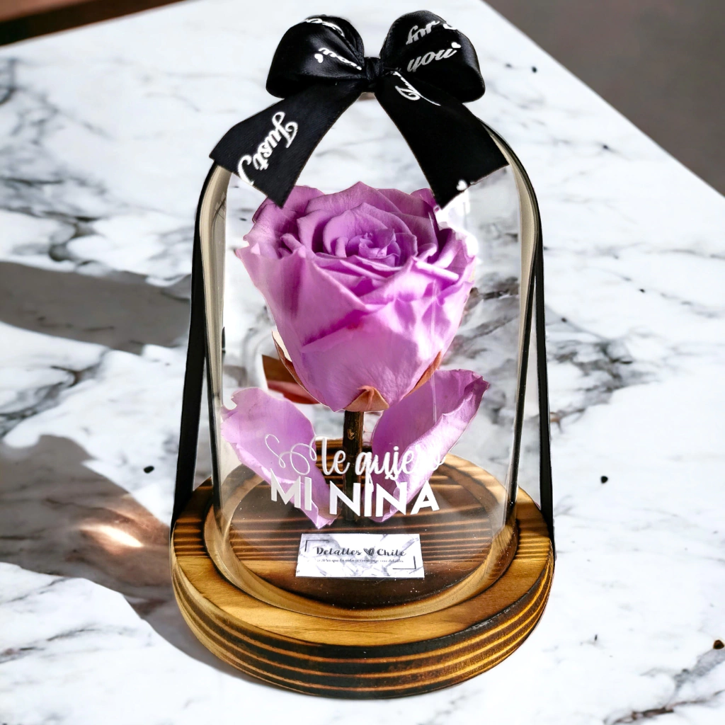 Regala un detalle mágico inspirado en Bella y la Bestia. Nuestra Rosa Eterna mantiene su color y belleza natural entre 4 a 5 años, simbolizando amor, admiración y elegancia.